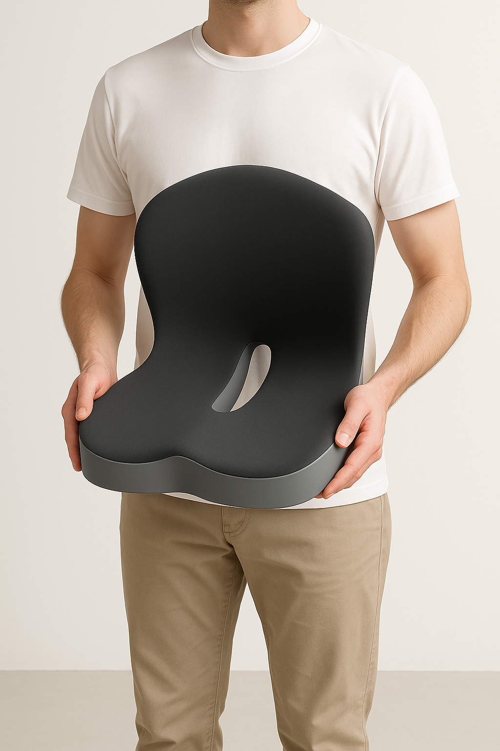 Most chairs start putting stress on your body in less than half an hour. Your hips shift, posture slouches, and pressure builds on your tailbone and lower back — leading to soreness, stiffness, or even numbness.
